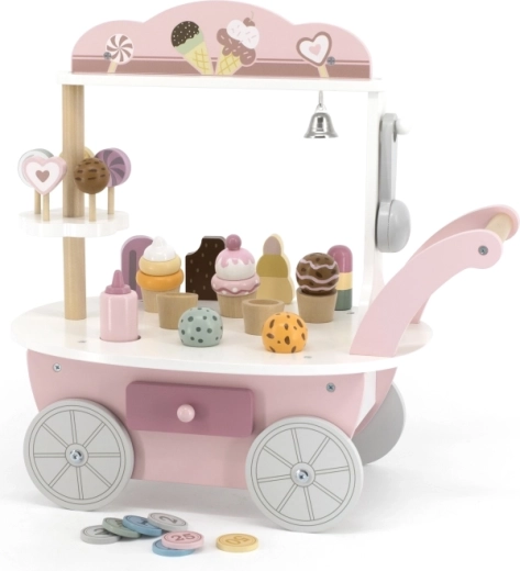 Dazu gehören Lutscher, Waffelhörnchen, Eiskugeln und Toppings, die kreatives Kombinieren und realitätsnahes Verkäufer-Spiel fördern.