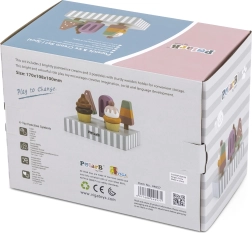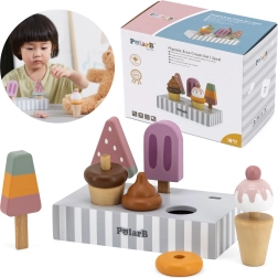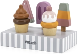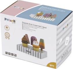 Das Set aus 5 Holz-Eis in verlockenden Farben bringt Kindern endlosen Spielspaß. Die Eis sind auf einem stabilen Holzständer platziert, der sowohl zur Präsentation als auch zur übersichtlichen Aufbewahrung dient. Alles ist aus hochwertigem Holz gefertigt und mit sicheren, ungiftigen Farben bemalt.