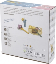 Dank robustem Holz und hochwertiger Verarbeitung ist das Set auch für den täglichen Einsatz geeignet. Ideal für die Kinderküche, die Spielecke oder für unterwegs. Das Spiel mit Lebensmitteln unterstützt Farben, Formen und grundlegende Tischregeln.