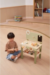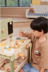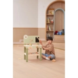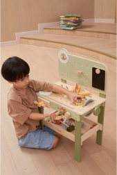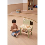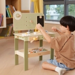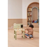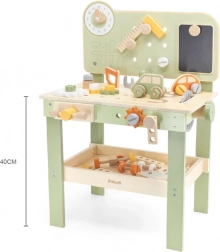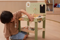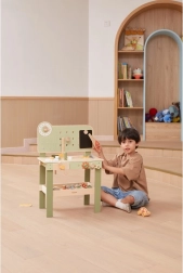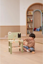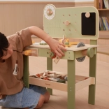 Die stylische Kinderwerkbank in Natur-Grün bietet ein realistisches Werkstatterlebnis in sicherer, hölzerner Ausführung. Kinder können schrauben, Räder am Auto wechseln, Teile „sägen“, Zahnräder zusammensetzen und Ursache-Wirkungs-Prinzipien entdecken. Dank des übersichtlichen Stauraums sind alle Teile und Werkzeuge stets griffbereit.