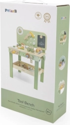 Entdecken Sie die hochwertige Holz-Werkbank für Kinder aus der exklusiven Serie POLARB von VIGA. Kleine Tüftler können Nägel einschlagen, Schrauben mit dem Schlüssel anziehen, Plättchen und Zahnräder befestigen und spielerisch ihre Feinmotorik trainieren. Inklusive Uhr mit Zeigern, Holzauto, praktischer Werkzeugablage und Tafel zum Zeichnen für noch mehr Spaß.