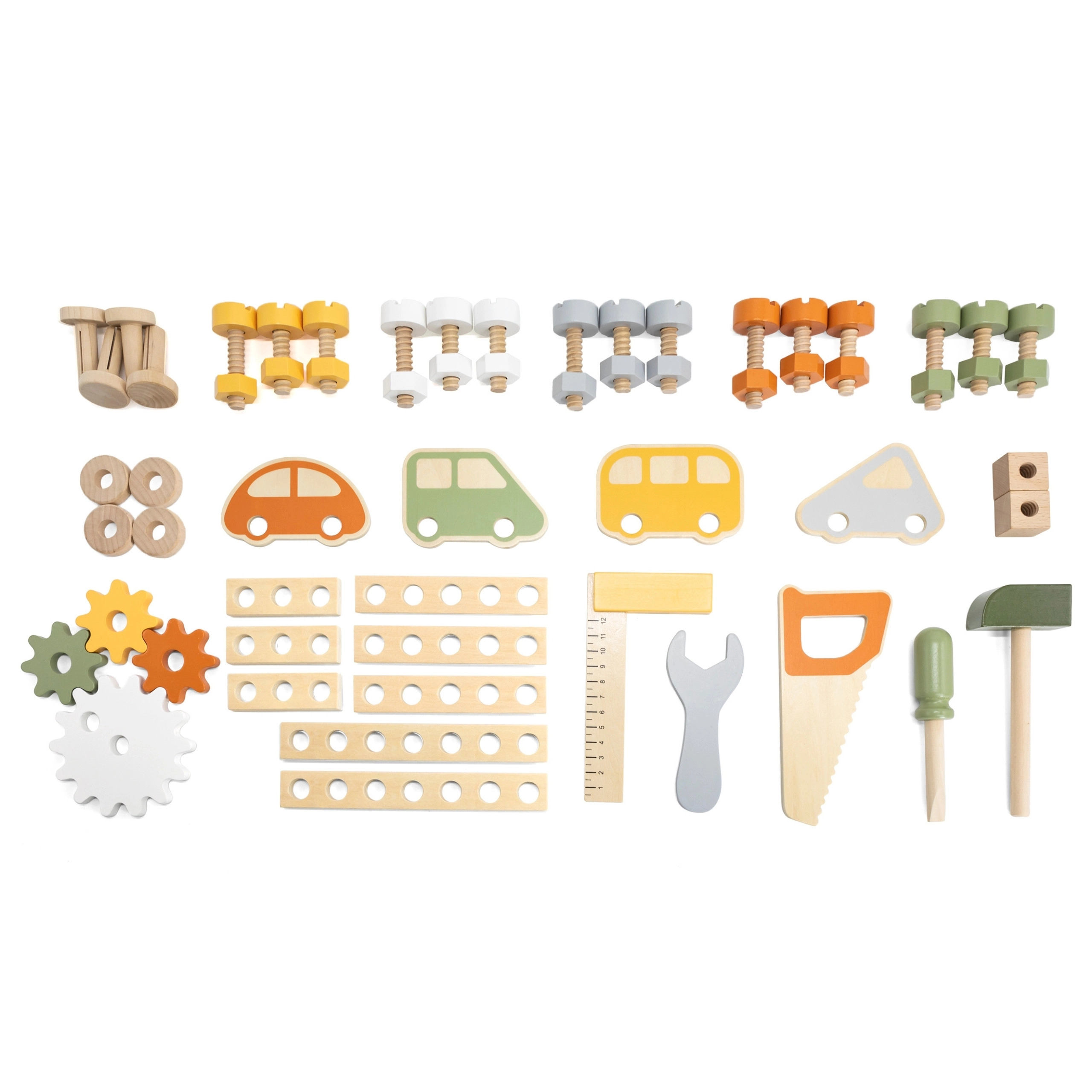 Schrauben, Muttern, Leisten, Getriebe und Werkzeuge geben Kindern Freiheit zu bauen, zu kombinieren und mechanische Prinzipien auszuprobieren.