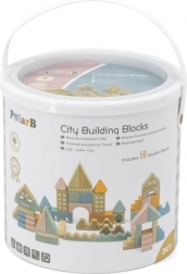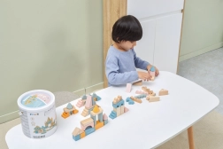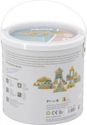 Dieser hochwertige Holzbaukasten im Eimer enthält 50 sorgfältig verarbeitete Teile in angenehmen Pastellfarben. Kinder bauen damit Häuschen, Türmchen und ganze Städte und entwickeln dabei Koordinationsfähigkeiten, logisches Denken und Kreativität.