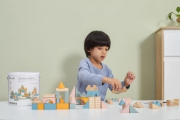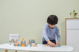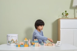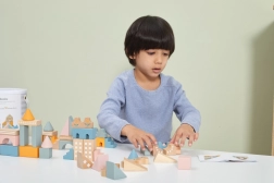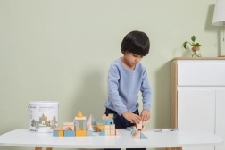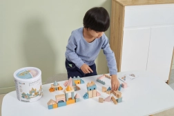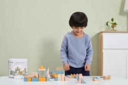 Vielseitige Formen und Größen (ca. 2,5–9 cm) ermöglichen es Kindern, Häuser, Türme und ganze Städte zu bauen und gleichzeitig das räumliche Wahrnehmen zu trainieren.