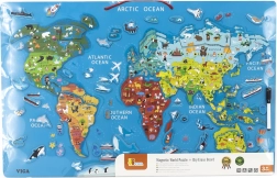 Mit dieser 2-in-1 Lerntafel zeichnen Kinder nicht nur, sondern entdecken die Welt auch mithilfe magnetischer Teile, die Kontinente, Verkehrsmittel und Meerestiere darstellen. Die Karte ist auf Englisch, was das Erlernen der englischen Sprache beim Spielen fördert. Die Tafel enthält 106 Teile und ist ein hervorragendes Hilfsmittel zur Entwicklung vielfältiger Fähigkeiten.