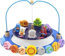 Mit dem Holzspiel Balancierspiel - Weltraumspaß tauchen Kinder in ein Weltraumabenteuer ein. Dieses unterhaltsame und lehrreiche Spiel enthält eine Basis mit den Maßen 26 x 26 x 18 cm, die einem Kreis mit Weltraummotiven ähnelt.
