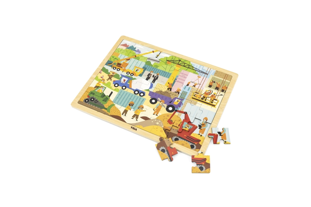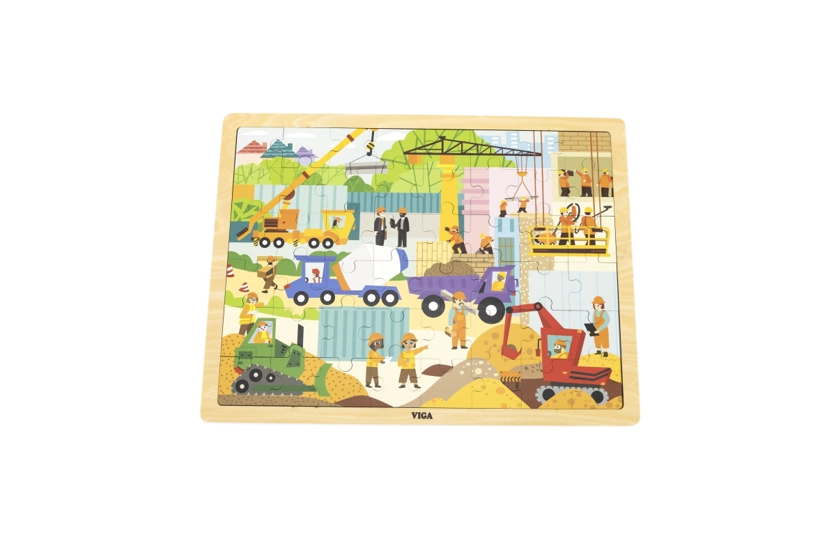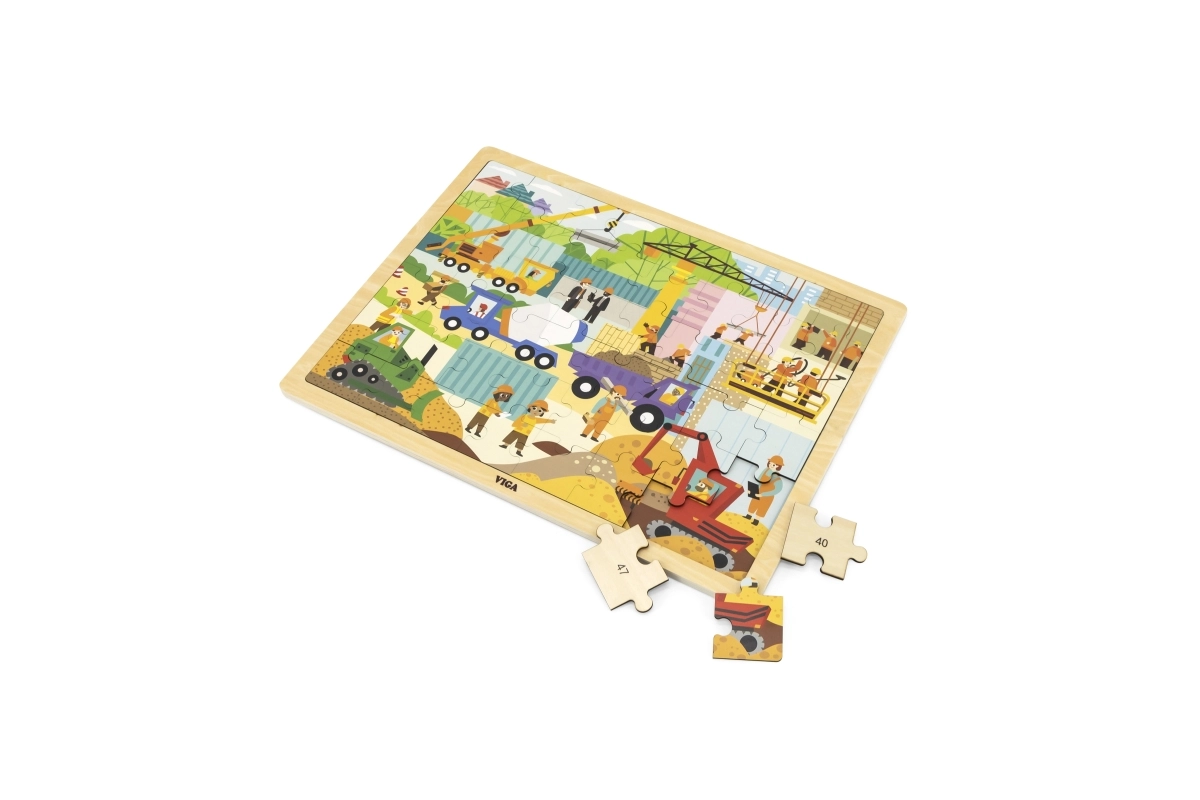 Dieses hochwertige Holzpuzzle mit Baustellenmotiv ist die ideale Wahl für das erste größere Puzzle. Dank 48 präzise geschnittener Teile üben Kinder die Auge-Hand-Koordination und lernen Formen und Farben zu erkennen. Die stabile Holzunterlage hält das Bild zusammen und erleichtert die Handhabung.