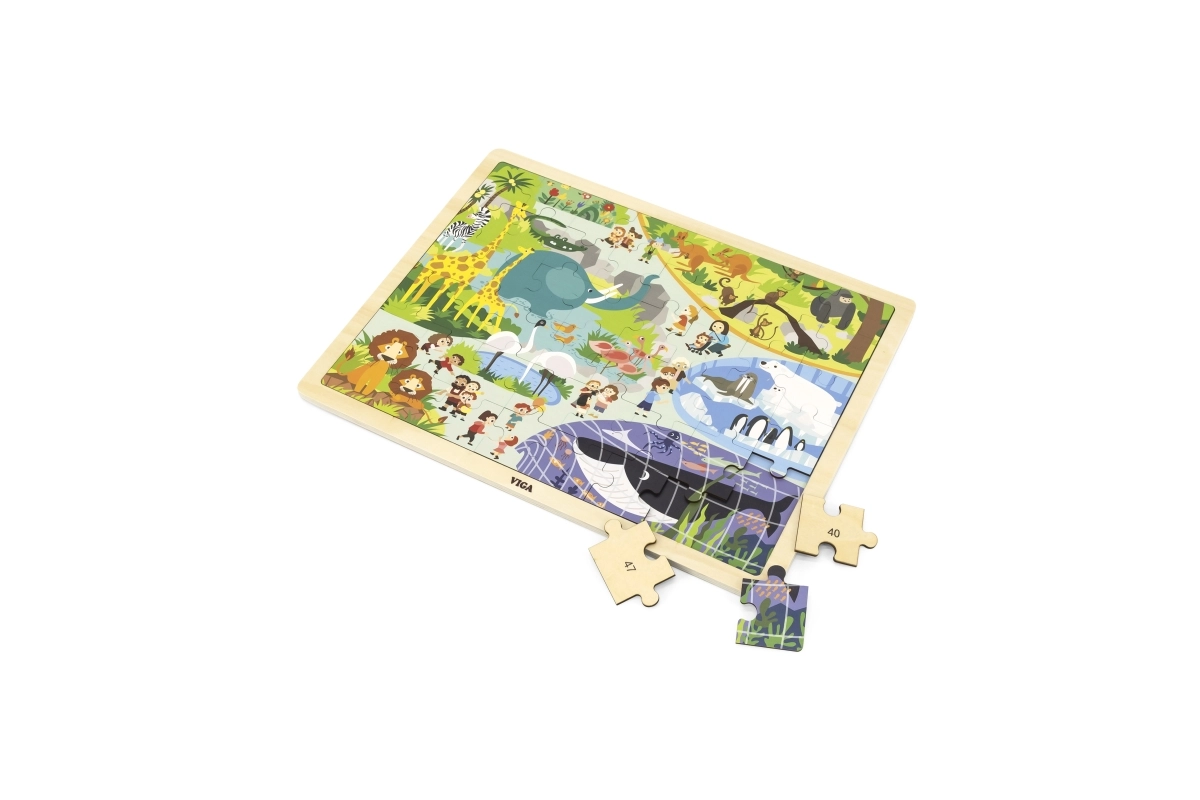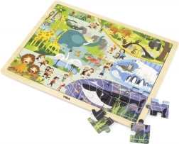 Mit 48 Teilen ist das Puzzle ein hervorragender Schritt zwischen einfachen Steckpuzzles und anspruchsvolleren Puzzles. Es unterstützt Koordinationsfähigkeiten, konzentriertes Wahrnehmen sowie das Kennenlernen von Zootieren.