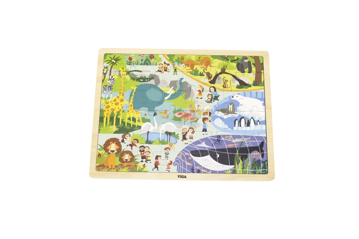 Dieses niedliche Holzpuzzle mit Tiermotiven aus dem Zoo begeistert alle kleinen Puzzle-Fans. Die hochwertigen Holzteile liegen gut in der Hand und sind auch bei häufigem Gebrauch langlebig. Nach dem Zusammensetzen entsteht ein schönes Bild in der Größe von ca. 40 × 30 cm, das immer wieder neu gepuzzelt werden kann.