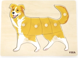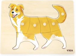 Die robuste Holzplatte und glatt geschliffene Kanten sorgen für sicheres, langlebiges Spiel – zu Hause und im Kindergarten. Das klare Hundemotiv lädt zum Puzzeln ein.