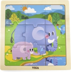 Das klassische Holzpuzzle mit fröhlichem Elefantenmotiv ist das ideale erste Puzzle für die Kleinsten. Die stabilen Teile lassen sich leicht greifen und in die beiliegende Platte einsetzen, die bei der Orientierung hilft und das Bild zusammenhält.