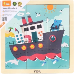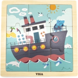 Einfache Formen und kräftige Farben des Schiffs- und Meermotivs unterstützen erste Puzzle-Erfolge und die visuelle Wahrnehmung.