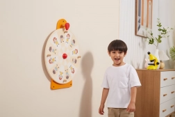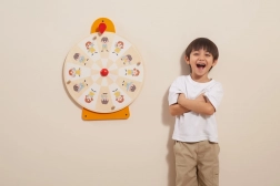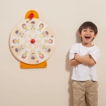 Dieses hölzerne Wandspiel fördert Beobachtungsfähigkeit, schnelle Reaktionen und Hand-Auge-Koordination. Kinder drehen am Rad und der Pfeil zeigt den Gesichtsausdruck oder die Tätigkeit, die nachgeahmt werden soll – so trainieren sie ganz natürlich Emotionsausdruck, logisches Denken und Feinmotorik.