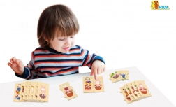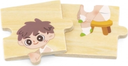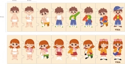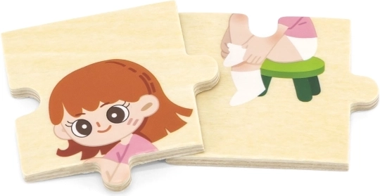 Dieses hochwertige, hölzerne Lernspielzeug vermittelt Kindern den richtigen Ablauf beim Anziehen durch das Zusammensetzen aufeinanderfolgender Teile mit Bildern eines Jungen und eines Mädchens. Jedes Teil hat ein einzigartiges Motiv und passt exakt zusammen, sodass Kinder beim Spielen ihr Verständnis für Zusammenhänge sowie ihre Geduld trainieren.