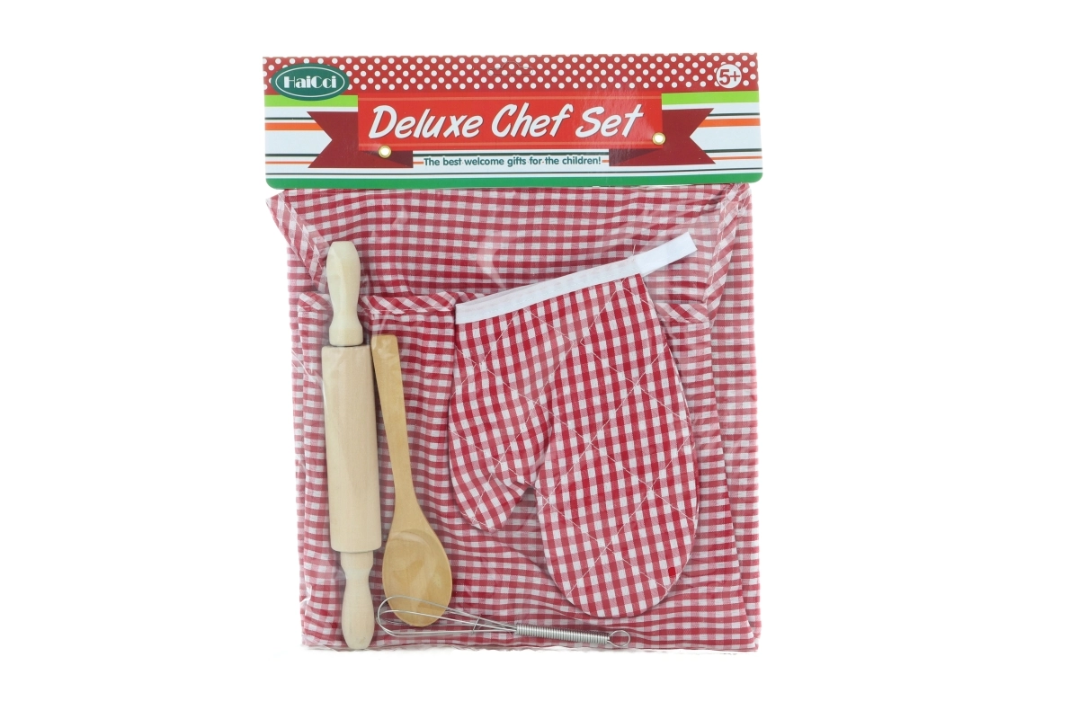 Das Set ist für die bequeme Nutzung mit Kinderhänden konzipiert und unterstützt Selbstständigkeit, Fantasie sowie eine positive Beziehung zu Essen und Kochen. Schürze und Topflappen schützen die Kleidung und vermitteln das Gefühl, ein echter Koch zu sein.