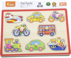 Dieses hochwertige Holzpuzzle mit Fahrzeugmotiven (Flugzeug, Taxi, Fahrrad, Bus u. a.) bietet eine spielerische Lernmöglichkeit. Die Teile mit praktischen Griffen passen in vorgefräste Öffnungen, sodass Kinder ihre Geschicklichkeit und logisches Denken ganz natürlich trainieren. Die stabile Holzplatte mit den Maßen ca. 30 × 22,5 cm ist robust und für den täglichen Gebrauch geeignet.