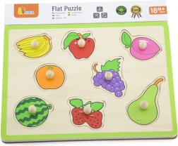 Buntes Holzpuzzle mit Obstmotiven für Kinder ab 18 Monaten fördert die Feinmotorik, das Erkennen von Formen und Farben sowie die Hand-Auge-Koordination. Dank der Holzgriffe lassen sich die Teile leicht halten und einsetzen – ideal für erste logische Spiele.