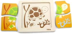 Das Holzpuzzle mit einem Schildkrötchen ist für Kinder ab 18 Monaten konzipiert. Es besteht aus vier großen Teilen, die leicht in den Holzrahmen passen oder separat zusammengesetzt werden können. Jedes Teil ist farbenfroh und bietet eine einzigartige Möglichkeit, die räumliche Vorstellungskraft und Hand-Auge-Koordination zu fördern.