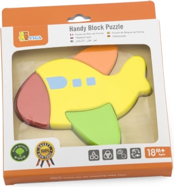 Entdecken Sie das erste Puzzle für die Kleinsten: das Viga Holz-Mini-Puzzle mit Flugzeugmotiv. Das Set enthält 4 robuste Teile, die sich leicht greifen und in die geformte Holzunterlage einsetzen lassen. Das Spielzeug fördert die Feinmotorik, das Formenerkennen und das logische Denken und ist aus sicheren, ungiftigen Materialien ohne scharfe Kanten gefertigt.