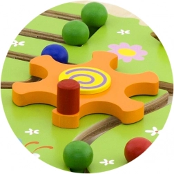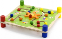 Das Spiel Tropf und Folge ist so konzipiert, dass es die Feinmotorik und Koordination von Hand und Augen fördert. Kinder werden motiviert, die Stifte gemäß den sechs mitgelieferten Musterkarten in die richtigen Positionen auf dem Brett zu setzen.