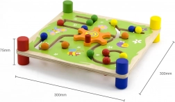Das Spiel hilft Kindern, ihre Feinmotorik und Auge-Hand-Koordination zu verbessern, indem sie farbige Stifte auf das Brett setzen.