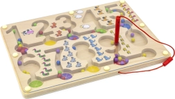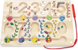 Treten Sie ein in die Welt des Lernens und des Spaßes mit dem Magnetischen Labyrinth - Zahlen. Dieses Holzbrett, ausgestattet mit Ziffern und farbenfrohen Perlen, bietet eine tolle Möglichkeit, wie Kinder ihre mathematischen Fähigkeiten und Feinmotorik entwickeln können.