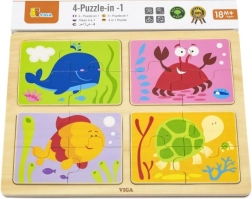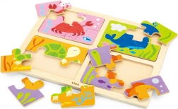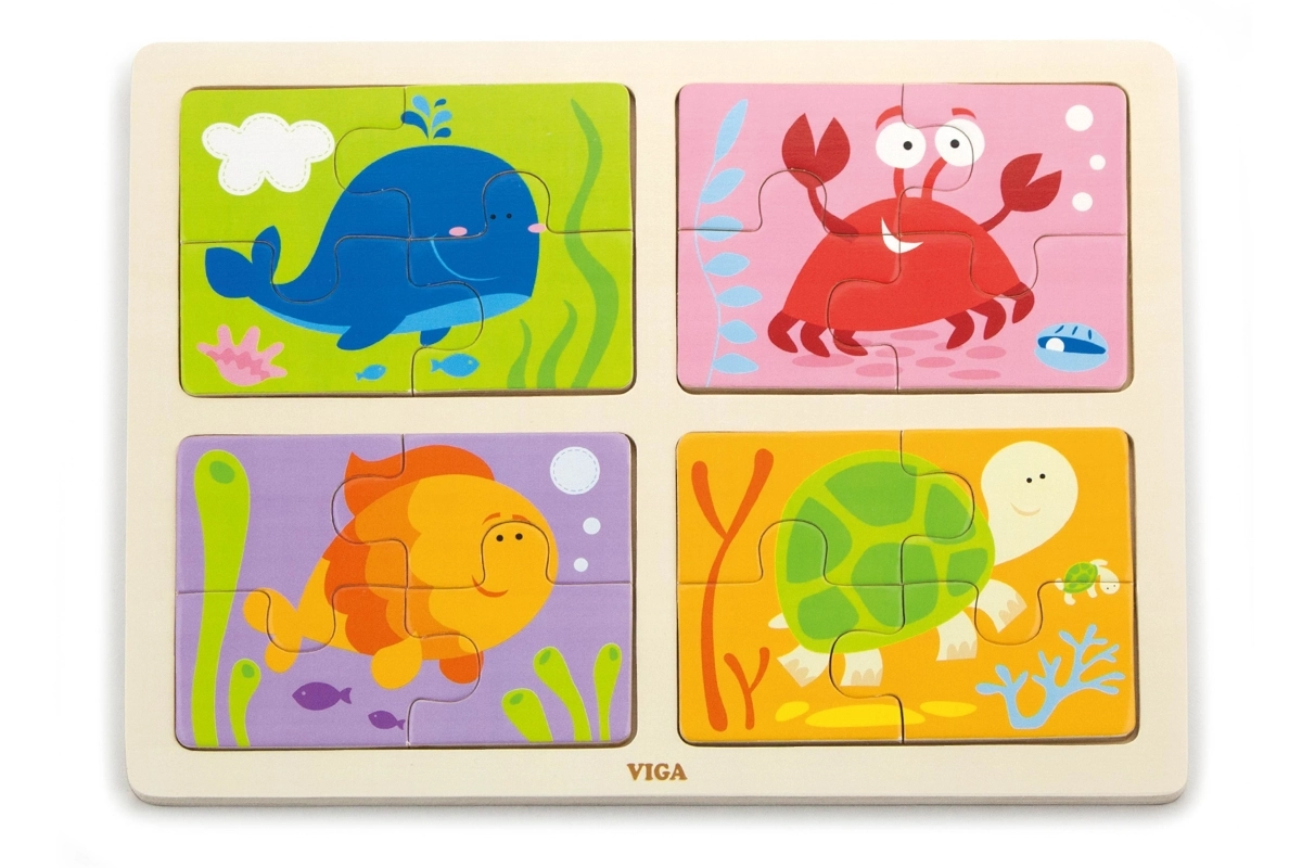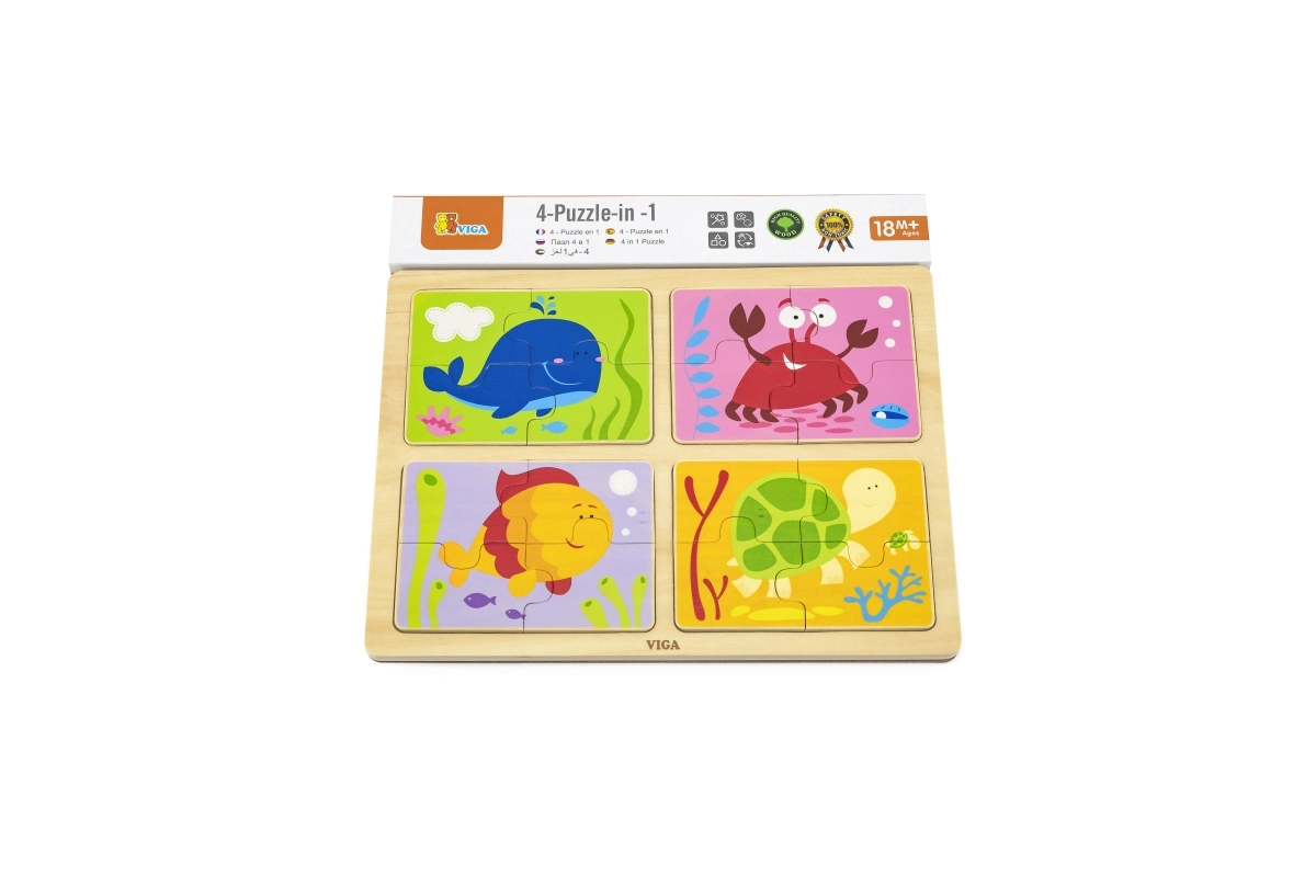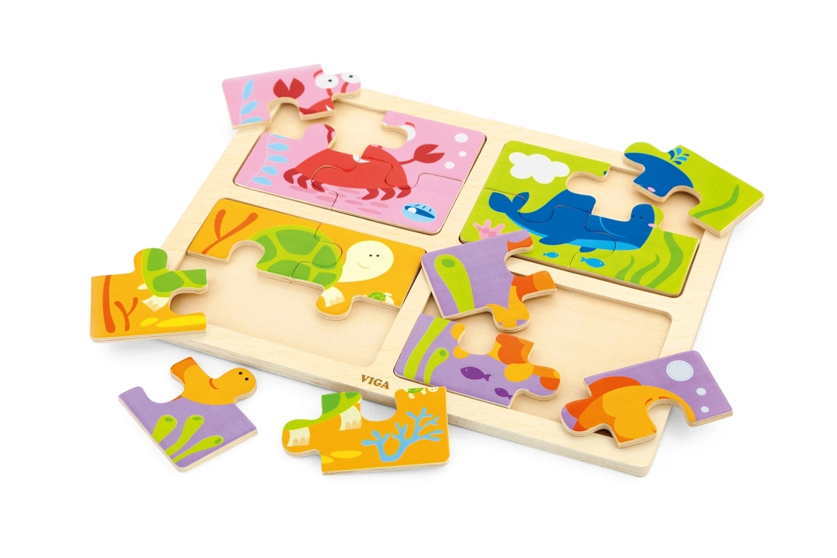 Dieses Set enthält vier einfache Holzpuzzles mit niedlichen Meeresmotiven. Dank der überschaubaren Teilezahl sind sie ideal für die ersten Puzzle-Erfahrungen von Kindern, fördern die Auge-Hand-Koordination und lehren Geduld.