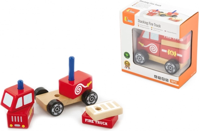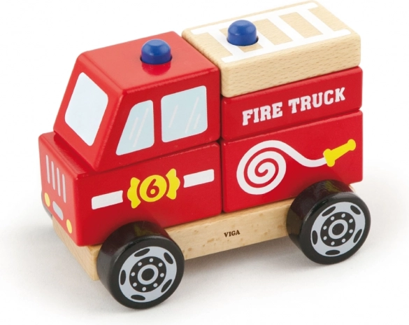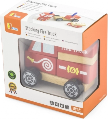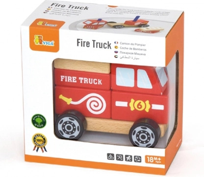 Holzpuzzle Feuerwehrauto VIGA für Kinder ab 18 Monaten. 3 in 1: Bauset, Puzzle und fahrbares Auto. Fördert Motorik und Fantasie.