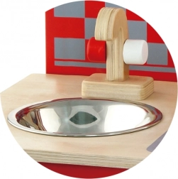 Enthält eine kompakte Spüle mit stilvollem Wasserhahn, perfekt für spielerisches Spülen.