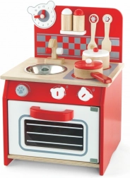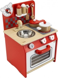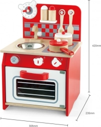 Dank der hochwertigen Holzausführung ist diese Küche nicht nur langlebig, sondern auch ästhetisch ansprechend. Im Lieferumfang sind auch Spielzubehör enthalten, wie z.B. Kochlöffel, Schöpflöffel, Topf mit Deckel, Pfanne mit Deckel und zwei Gewürzstreuer.