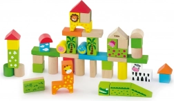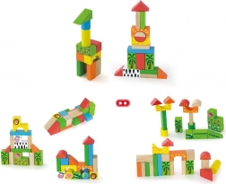 Verschiedene Formen und Farben inspirieren zum freien Bauen und zum Lernen von Formen und Farben. Tiermotive machen jedes Spiel noch unterhaltsamer.