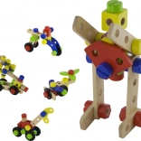 Kreativer Holz-Konstruktionsbaukasten im praktischen Eimer begeistert kleine Baumeister ab 3+. Er enthält 48 Teile und eine bebilderte Anleitung für leichte erste Modelle und fördert Fantasie, Geduld und die Feinmotorik.