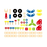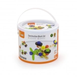 Dieser hölzerne Konstruktionsbaukasten ist die ideale Wahl für erstes technisches Bauen. Kinder können nach ihrer Fantasie eigene Kreationen zusammensetzen oder sich von der beiliegenden Bildbroschüre mit Schritt-für-Schritt-Anleitungen inspirieren lassen. Der kompakte Eimer mit Henkel erleichtert Transport und Aufbewahrung, sodass der Baukasten stets griffbereit ist und keine Teile verloren gehen.