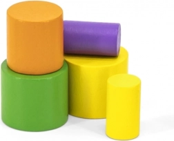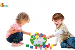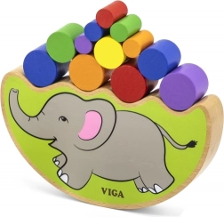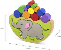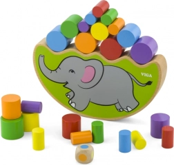 Die gewölbte Elefantenbasis und verschieden große Zylinder lehren Kinder, sensibel auszubalancieren und die Teile präzise zu platzieren.