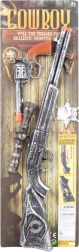 Dieses unterhaltsame Cowboy-Set bietet Kindern ein authentisches Spielerlebnis rund um den Wilden Westen. Das große Gewehr mit einer Länge von ca. 50 cm ist mit einem Visier ausgestattet, die Pistole liegt bequem in der Hand und dank des Schussgeräusch-Effekts wirkt das Spiel noch realistischer – und das alles ganz ohne Batterien.