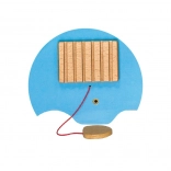 Die geriffelte Leiste erzeugt beim Darüberstreichen mit dem Stäbchen charakteristische Geräusche. Kinder trainieren Griff, Koordination und rhythmisches Empfinden.