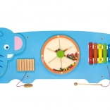 Das Wandpanel in Form eines niedlichen Elefanten verwandelt die Wand in eine kreative Ecke. Kinder genießen sicheres sensorisches und musikalisches Spiel, bei dem Gehör, Sehen, Tastsinn und Hand-Auge-Koordination gefördert werden. Dank robuster Holzausführung und Wandmontage ist die Tafel stabil und für den täglichen Gebrauch bereit.