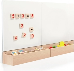 Dieser Satz magnetischer Holzzahlen ist ein hervorragendes Werkzeug für interaktives Mathematiklernen. Dank der Magnete können Kinder einfach einfache Gleichungen auf jeder magnetischen Oberfläche zusammenstellen und auseinandernehmen.