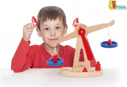 Die Holzwaage für Kinder ab 3 Jahren von dem renommierten Spielzeughersteller Viga ist ideal für Kindergärten sowie für den Hausgebrauch. Dieses edukative Spielzeug hilft Kindern, die Konzepte von Gewichtung und Balance zu verstehen und fördert grundlegende mathematische Fähigkeiten und Koordination.