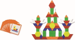 Geometrische Blöcke bieten viel Spaß. Kinder können Muster von den mitgelieferten Karten kopieren oder ihre eigenen Kombinationen erstellen. Die Blöcke können an einer Magnettafel befestigt oder auf einem Tisch bespielt werden. Dieses Produkt ist für Bildungsspiel konzipiert, das die Feinmotorik und das räumliche Wahrnehmen anregt.