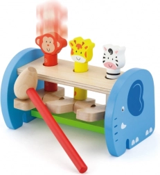 Dieses hochwertige Holzspielzeug bietet sicheres und farbenfrohes Spielen mit niedlichen Tieren. Kinder klopfen mit dem Hammer auf den Mechanismus, der die Tiere herausspringen lässt – so verbessern sie Griff, Greifkraft und Präzision der Bewegungen. Die stabile Konstruktion und glatten Kanten sorgen für Sicherheit bei täglicher Nutzung.