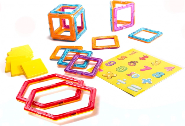 Ein Bausatz, viele Möglichkeiten – magnetische Teile verschiedener Formen ermöglichen es Ihnen, 3D- und flache Formen zu erstellen, dank der starken Magnete.