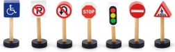 Das Set aus sieben Holz-Verkehrszeichen bietet Kindern grundlegende Kenntnisse über Verkehrsregeln.