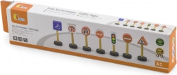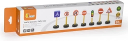 Dieses Gedächtnis- und Bildungsspiel enthält 7 verschiedene Holz-Verkehrszeichen, die Kindern helfen, grundlegende Verkehrsregeln zu erlernen. Das Spielzeug ist ideal für Kinder ab 3 Jahren und ergänzt perfekt jeden Bausatz oder jede Eisenbahnstrecke.