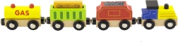 Bunte Holzeisenbahn mit Lokomotive und 3 Wagen zum Thema Energiequellen begeistert kleine Lokführerinnen und Lokführer. Die Wagen lassen sich dank magnetischer Kupplungen leicht verbinden, sind mit den meisten Holzeisenbahnen kompatibel und fördern Fantasie und Feinmotorik. Maße eines Wagens ca. 7 × 4,5 × 2,5 cm, geeignet ab 3 Jahren.