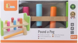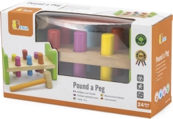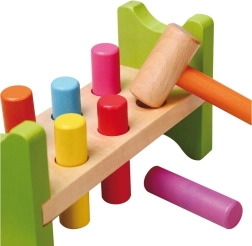 Das Einschlagen der farbigen Stifte trainiert Griff, Präzision und Hand-Auge-Koordination.