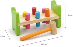 Diese Holz-Klopfbank mit den Maßen ca. 22,5 × 12 × 7,7 cm bietet Kindern stundenlange, sinnvolle Unterhaltung. Die farbigen Stifte werden mit dem Holzhammer eingeschlagen, wodurch Kinder auf natürliche Weise ihre Greifkraft, die Bewegungsgenauigkeit und das logische Denken entwickeln. Die robuste Konstruktion und glatten Oberflächen sorgen für eine sichere Anwendung.