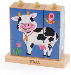 VIGA Steckwürfel – Haustiere (9 Würfel)