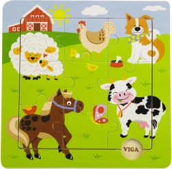 Die Größe des zusammengesetzten Bildes beträgt ca. 22,5 × 22,5 cm – eine praktische Größe für das Spielen am Tisch oder auf dem Boden. Das Puzzle ist geeignet für Kinder ab 18 Monaten und hilft, den Wortschatz beim Benennen der Tiere zu erweitern.