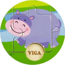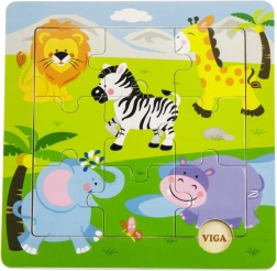 Entdecken Sie ein unterhaltsames Holzpuzzle mit Safarimotiven, ideal für die Kleinsten. Das Puzzle mit 9 großen Teilen fördert Feinmotorik, logisches Denken und Koordinationsfähigkeiten. Robuste Holzausführung und sichere Formen sind perfekt für Kinder ab 18 Monaten.
